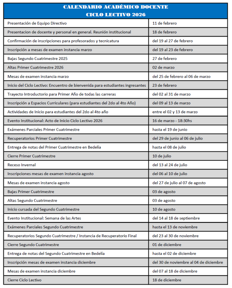 Calendario Académico 2026